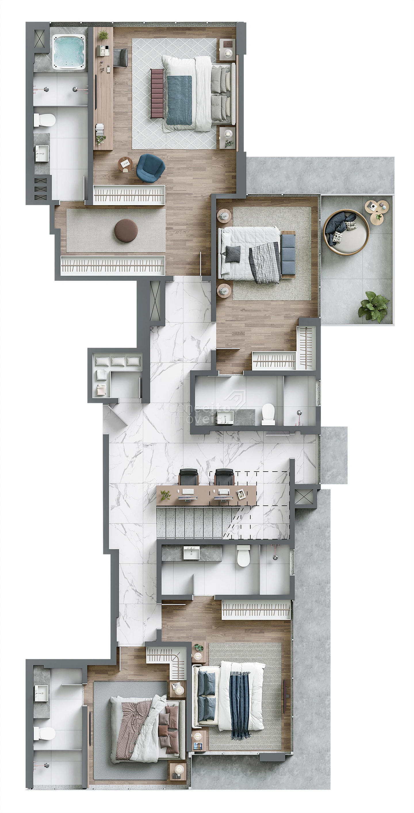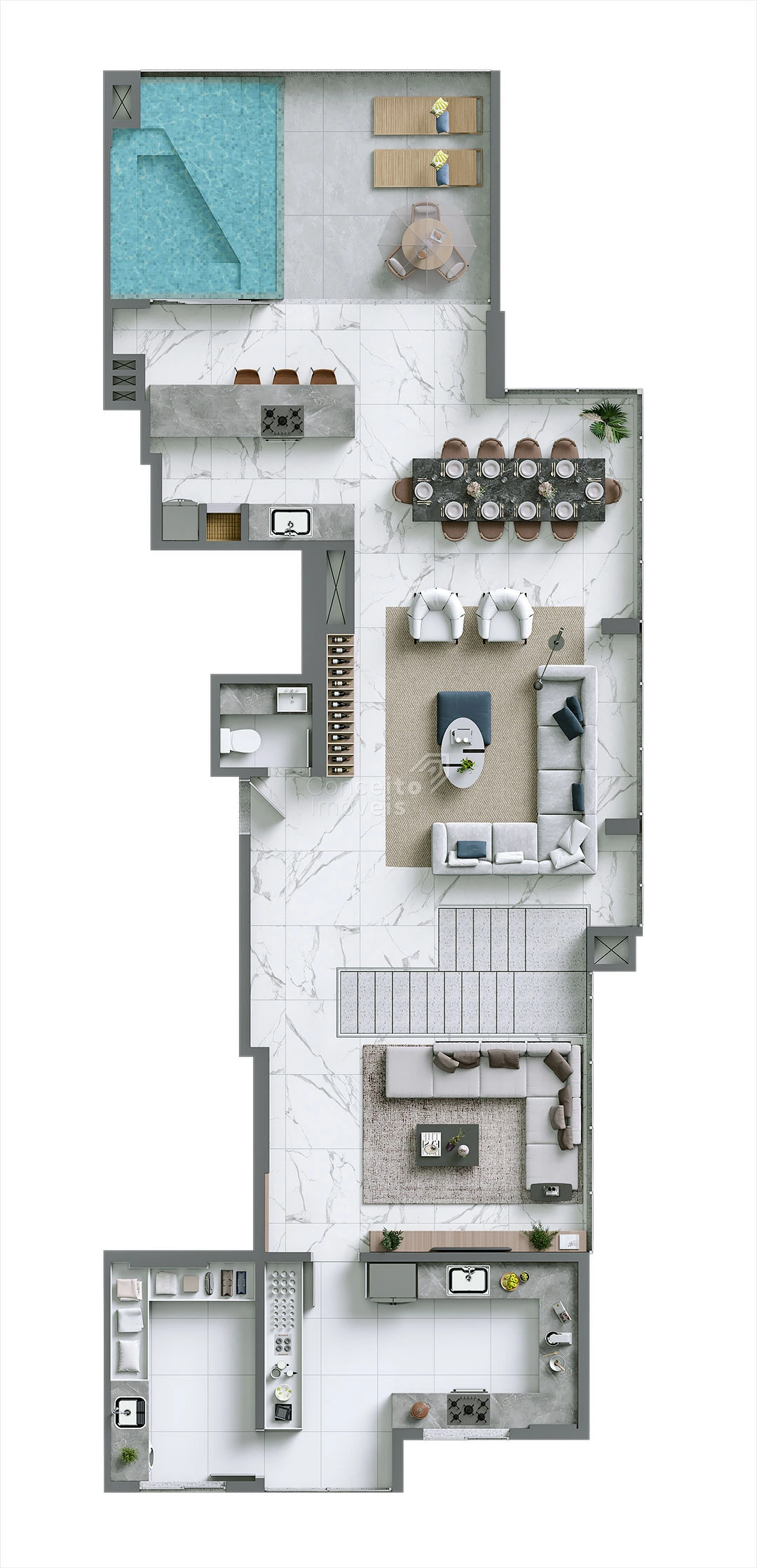 Este apartamento de alto padrão reúne elegância, conforto e uma experiência de moradia superior. Ambientes amplos e integrados destacam o living, as salas de estar e jantar, enquanto a cozinha americana adiciona modernidade e funcionalidade ao dia a dia. Os detalhes em gesso, o porcelanato e a vista panorâmica reforçam o caráter sofisticado do imóvel. Com infraestrutura completa para garantir praticidade e autonomia, este é um espaço pensado para quem valoriza exclusividade e alto nível de acabamento.