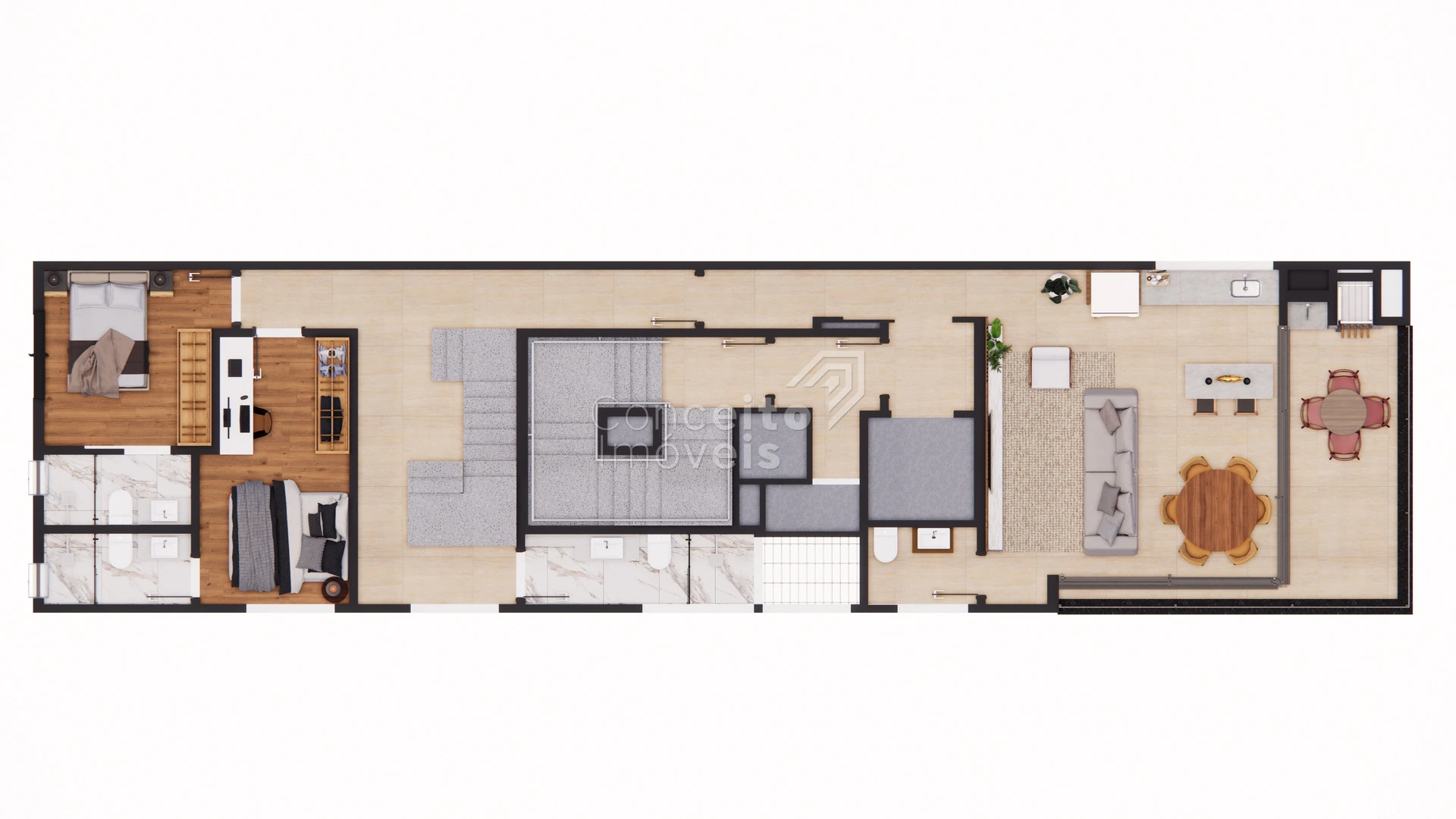 Acabamento premium: Pisos de porcelanato, gesso e infraestrutura de ponta