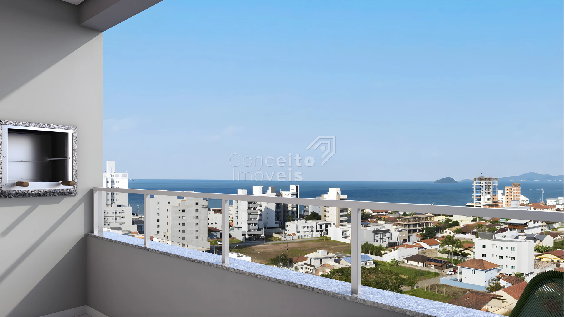 Sacada com churrasqueira — ideal para convivência, lazer e aproveitar o clima de litoral.