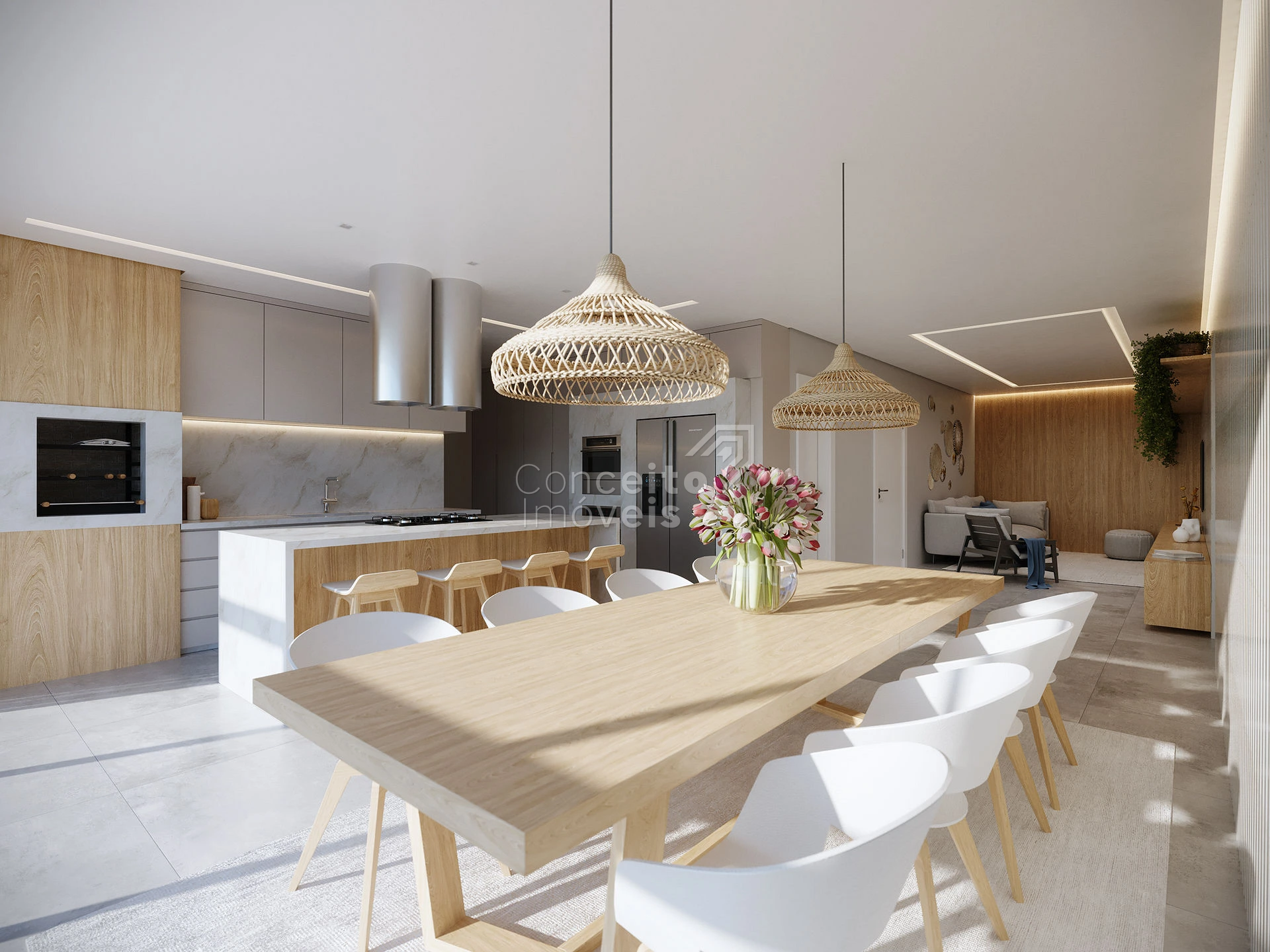 Conceito aberto com integração total ao living