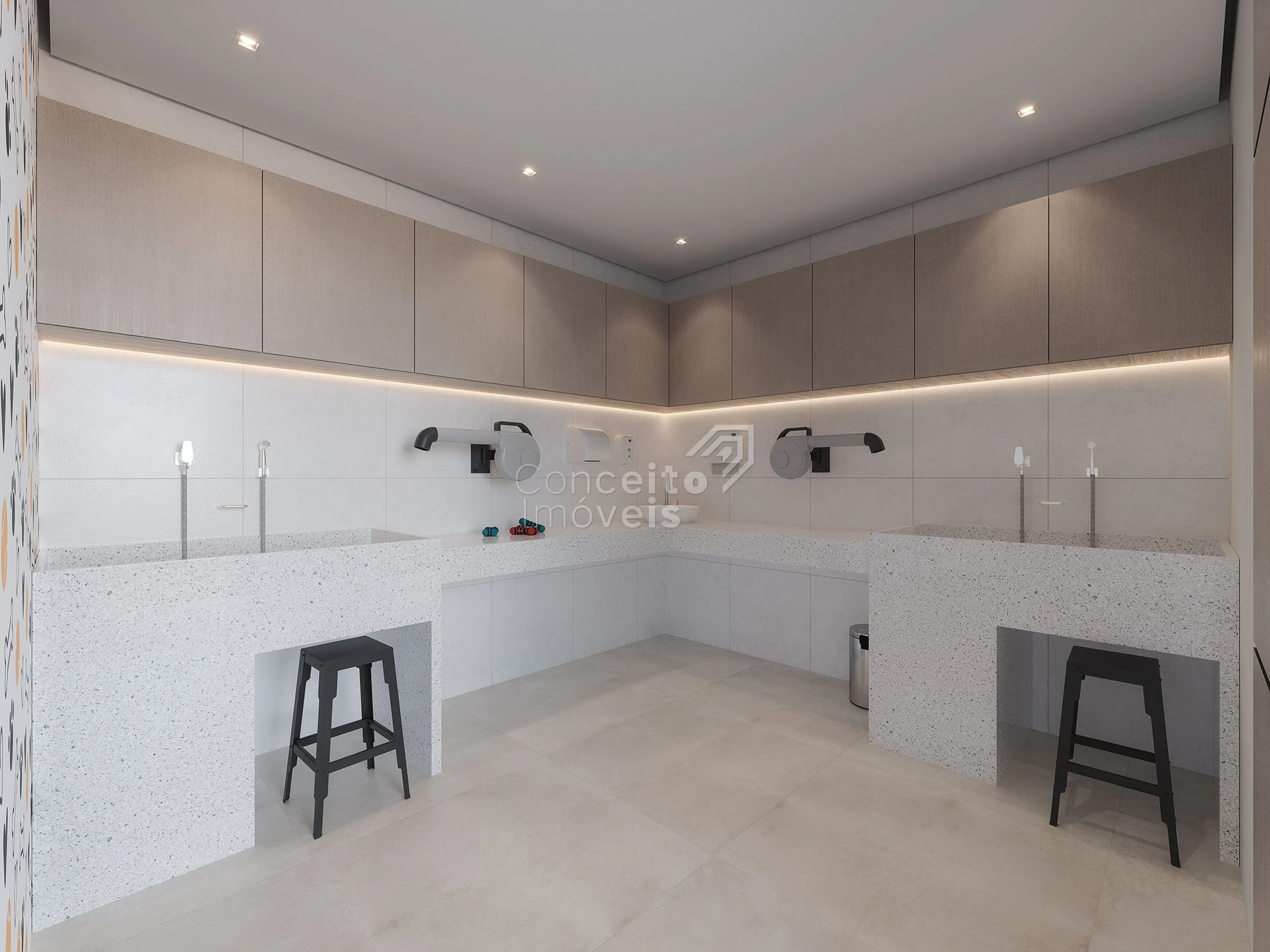 Bancadas amplas com opção para quartzo