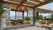 Varanda que reforça a relação entre moradia e estilo de vida litorâneo.