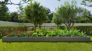 Equipada com churrasqueira a carvão, atende ao gosto regional e preserva a estética da área social com revestimentos discretos e dimensionamento adequado para compor bancada, mesa e decoração verde.