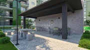 A amplitude é reforçada pela presença da varanda integrada, elemento que estende visualmente a área social e permite uma convivência contínua entre interior e exterior.