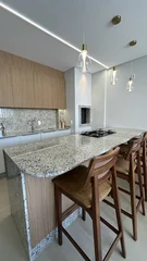 Varandas ou sacadas gourmet com churrasqueira, perfeitas para momentos de lazer e convivência.