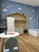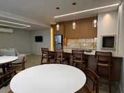 Área gourmet coletiva, salão de festas e espaço para recepção de convidados.