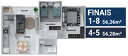 Área privativa: entre 56 m² e ~58 m² — conforme planta.
