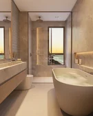 Acabamentos: Pisos em porcelanato, vidros laminados, infraestrutura para automação residencial, bancadas em granito ou mármore, acabamentos premium