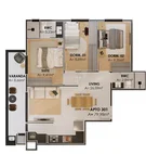2 a 3 dormitórios, com opções que incluem 1 ou 2 suítes;